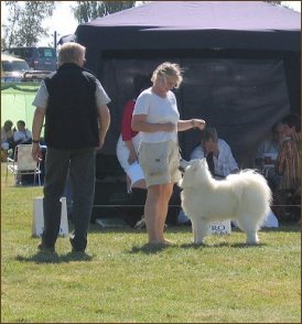 is running. The judge for the Samoyeds were Robert Sellevik from Norway. Finally when we got to the ring Ronja did quite well;